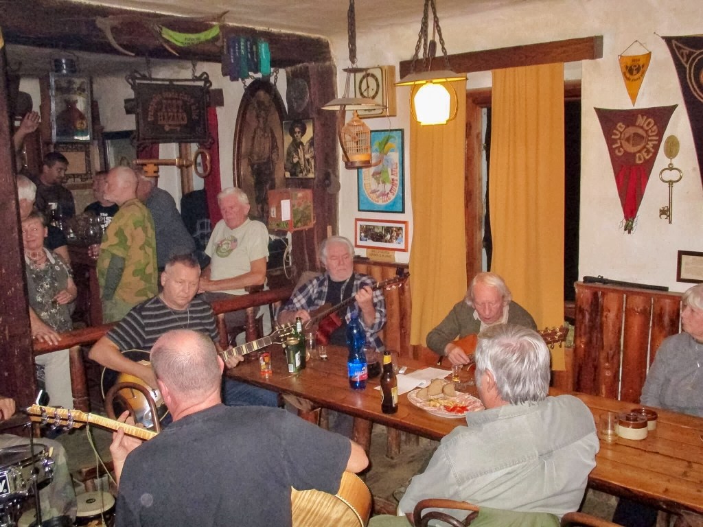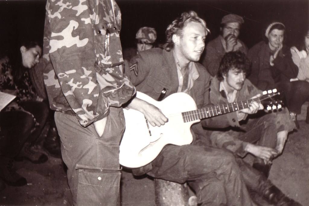 Oslavka byla sice naše království, ale jinak jsme jezdi doslova od Šumavy k Tatrám. Jezdilo se dokonce i do Rumunska odkud se dovážely ve velkém kytary typu Dragnouth, které u nás vůbec nebyly k sehnání. Nebyly nic moc, ale nic lepšího jsme neměli. Kdo neulovil nějakou starou Brauerku, měl smůlu. Na pořádnou kytaru jsem tenkrát neměl štěstí, ostatně ani peníze a tak jsem léta ani žádnou nevlastnil. Přijel jsem na potlach jen tak s batohem a protože všichni věděli, že dobře hraju a zpívám, nějakou kytaru mi vždycky vrazili do ruky. Mělo to své výhody. Nemusel jsem se s kytarou tahat do lesa, ani se o ni starat. Protože hra na kytaru byla v trampské komunitě hodně ceněná, stávala se ze mně postupně údolní „celebrita“. Pamatuji se, že se kamarádi často mezi sebou hádali o tom, kdo je nejlepší kytarista na údolí. Jako by se to dalo měřit?! Bylo to velmi akční období. V pátek odpoledne jsem přijel z Prahy vlakem do Brna, honem domů, do vany, najíst a spát. Ráno devítkou do Náměště a víkend na údolí. V neděli ve 12:00 vlak z Březníku do Brna, vana, večeře a v 18:00 vlak do Prahy! Že mi to tenkrát stálo za to fakt nechápu … A to jsem kolikrát v zimě trávil víkend na Oslavce sám, nebo jen s Pedálem, kterej byl na boudě skoro furt.