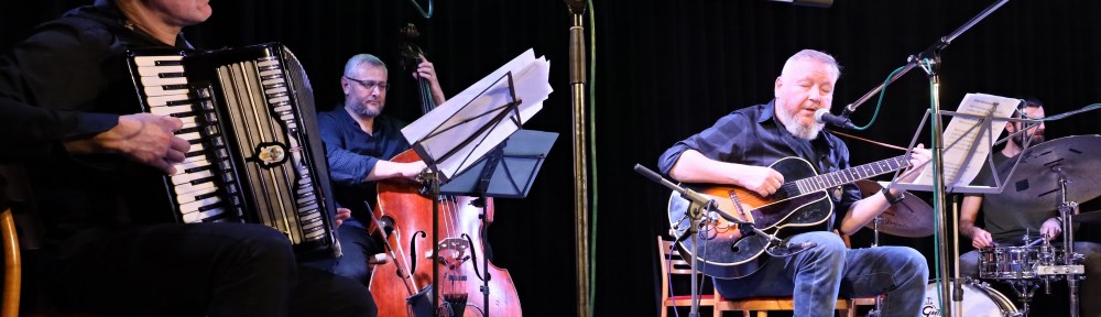 Křest taky nebyl úplně easy, protože jsem za tu dobu, kdy jsem se musel věnovat administraci všechno téměř zapomněl. Jsem sice zvyklý hrát i zpívat na koncertech, ale úplně jiný žánr, kdy zpívám anglicky a doprovázím víceméně volně. V trampské muzice jde o kontinuální doprovod a ještě k tomu zpěv v češtině. České texty jsou většinou daleko víc obsažné a taky komplikovanější. To by bylo ovšem na delší rozbor. Taky jsem prodal všechny svoje gibsonky abych projekt podpořil. Já vím někomu na tom jestli hraje na flattopa, nebo na archtopa nezáleží, ale ať to vezmete jak to vezmete, mě to zkrátka víc sluší s gibsonkou. Takže jsem koupil v Belgii starého Cromwella.
