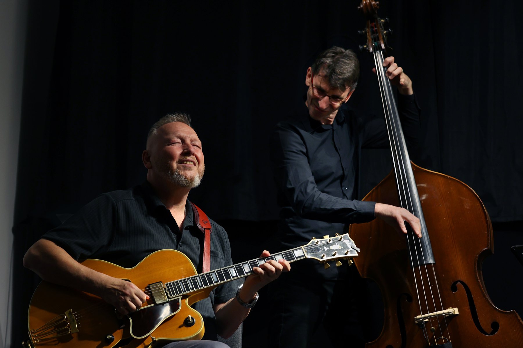 Roman: Když jsem si říkal, kam bych se vlastně s tím triem chtěl dostat, napadly mě dva vzory: Bill Evans Trio – s kytarou je to sice něco jiného než s pianem, ale Evans toho v jazzovém triu dokázal v podstatě nejvíc, a Branford Marsalis Trio – protože kytara může mít blízko i k saxofonu. A spojení těhle modelů tvoří ideální podnebí pro kytarové trio. Myslím si, že by to šlo, kytara je jak melodický tak harmonický nástroj… někdy mám chuť hrát jednotlivé tóny nebo intervaly a někdy hraju i čtyři chórusy harmonícky, v blocích. Ale je dobré říct, že naše trio ještě není zdaleka hotové. Ještě jsme nebyli ve studiu.