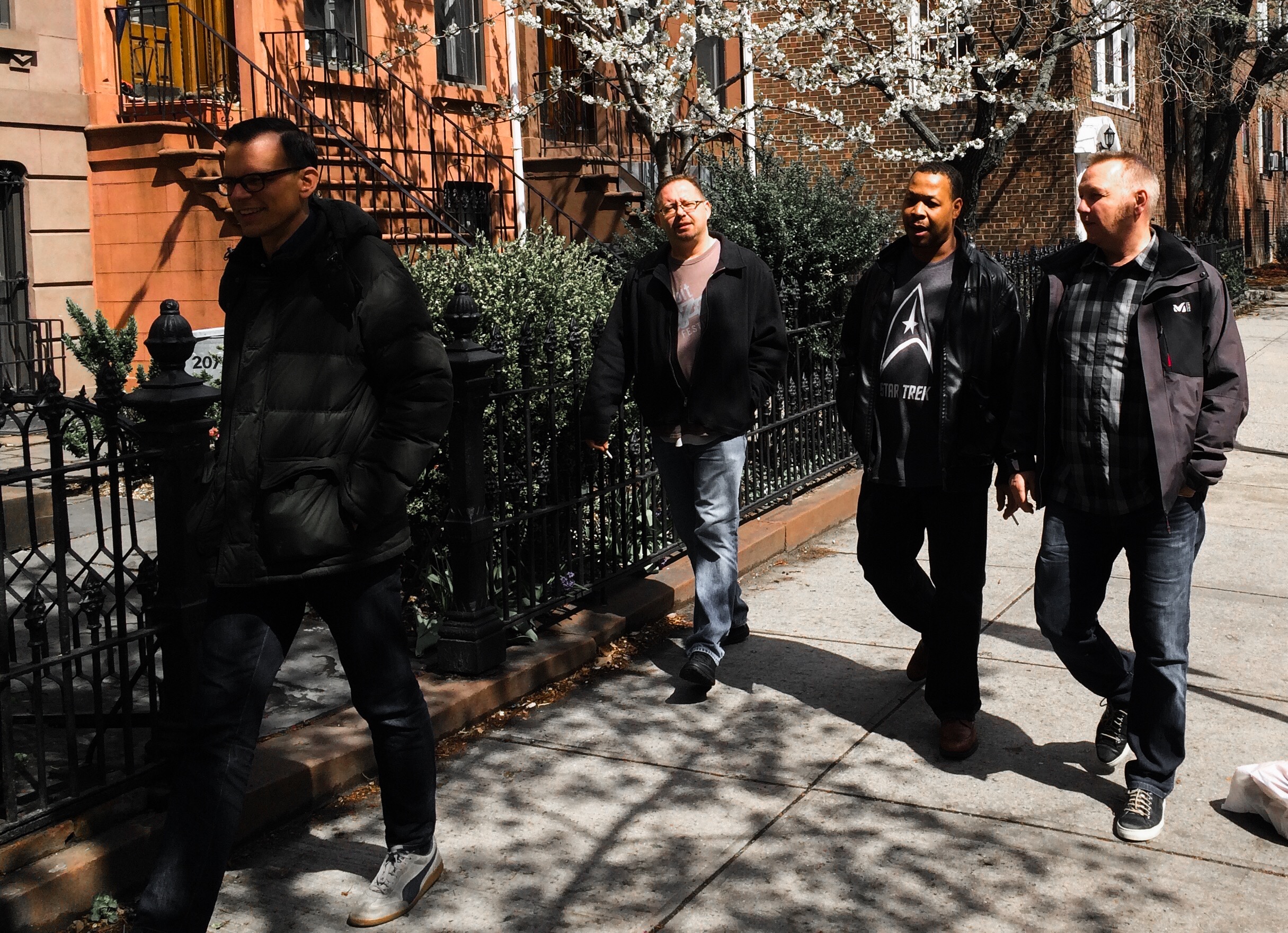 Do New Yorku jsme odletěli devátého dubna 2016 časně ráno. Každej kdo v NYC alespoň jednou byl, ví jakej je to na letišti po příletu opruz. Velká hala plná unavenejch zpocenejch lidí čekajících v řadách na celní kontrolu. Když přijdete na řadu, tak mají řečí jak vopica blech. Proč chcete do USA? Na co máte tu kytaru? Míníte si zde vydělávat hudbou? Máte v USA nějaké příbuzné? Zkrátka jen koukáte zálibně na vedlejší oddělení s nápisem Citizens, kde je úplně prázdno. Když jsme vylezli konečně ven před letiště, tak lilo jak z konve. Vůbec to byl takovej nevlídnej šedivej den a únava z dlouhého letu tomu nepřidala. Říkal sem si no nazdar hodiny to zase bude depka. Ubytovali jsme se v domě v Brooklynu, kousek od studia Acoustic Recordings Mika Brorbyho, kde mělo probíhat natáčení alba a šli brzy spát. Ráno mě vzbudily sluneční paprsky prodírající se skrze těžké závěsy. Tom už byl vzhůru a stačil taky nakoupit čerstvé potraviny na snídani. Den jak malovanej! Od toho rána už to byla naprostá paráda. Mimo samotného natáčení jsme s Tomem procourali celej Manhattan. Setkali se s celou řadou zajímavejch lidí, půjčili si kola a vůbec jsme si užívali. Počasí nakonec vyšlo nádherný a působilo spíš květnově než aprílově. Dostal jsem taky pozvání od Briana Charretta do klubu Fat Cat na jam. Jeden z nejznámějších klubů na Manhattnu je v podstatě taková zaplivaná díra s pár židlemi, křesly a gaučem před pódiem vedle baru a jinak samý kulečníkový stoly a fotbálek. Když kapela hraje, lidi sedí na gauči, nebo postávají s pivem kolem, ale většina hraje kulečník, nebo fotbálek a mají jazz jen jako kulisu. Podobnej pocit jsem měl i z klubu Knitting Factory, kde jsem hrál v roce 1999. Ještě jsme stihli udělat sérii fotek pod Brooklynským mostem s fotografem Standou Merhoutem, které byly později použity na obal alba.