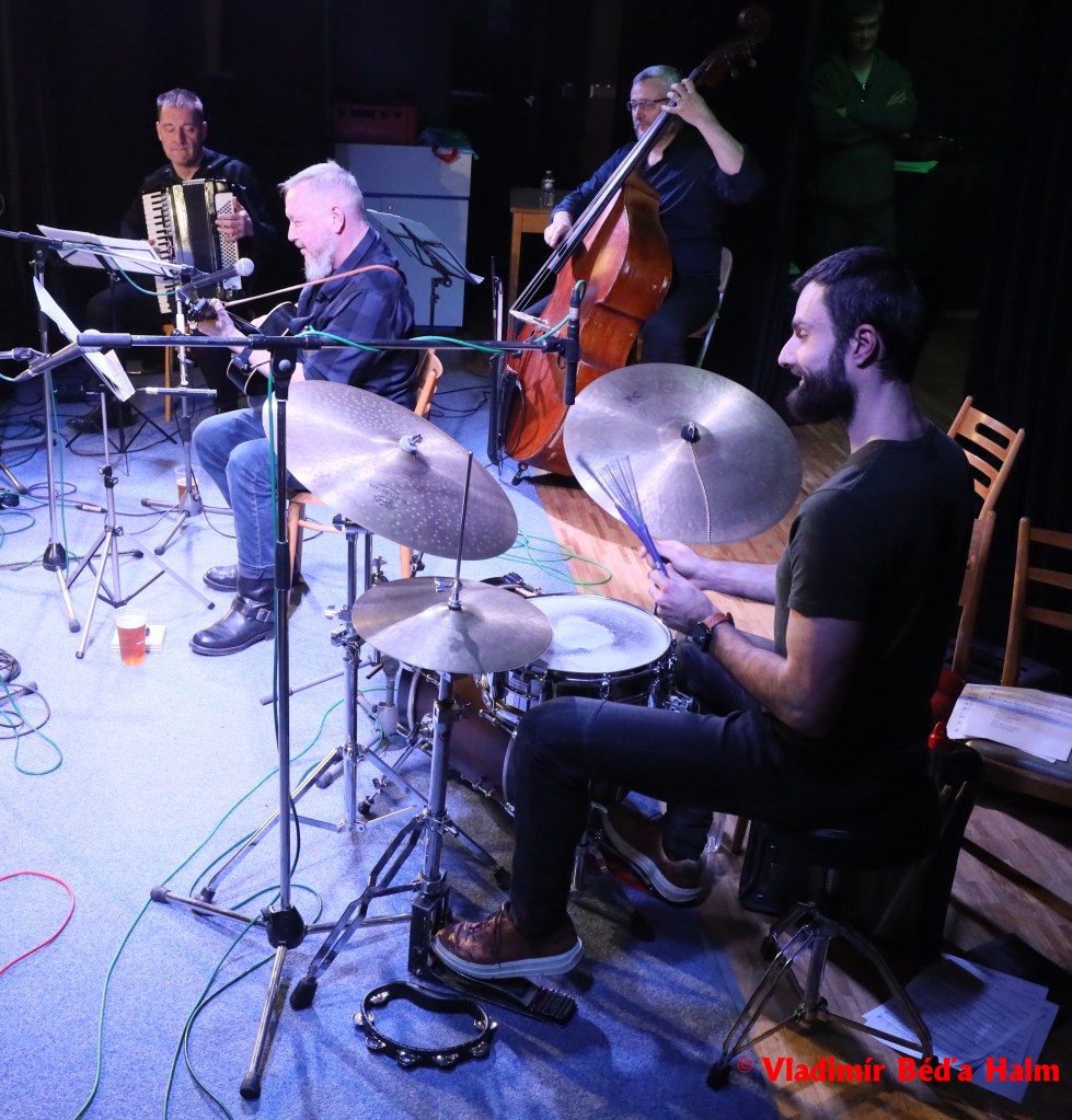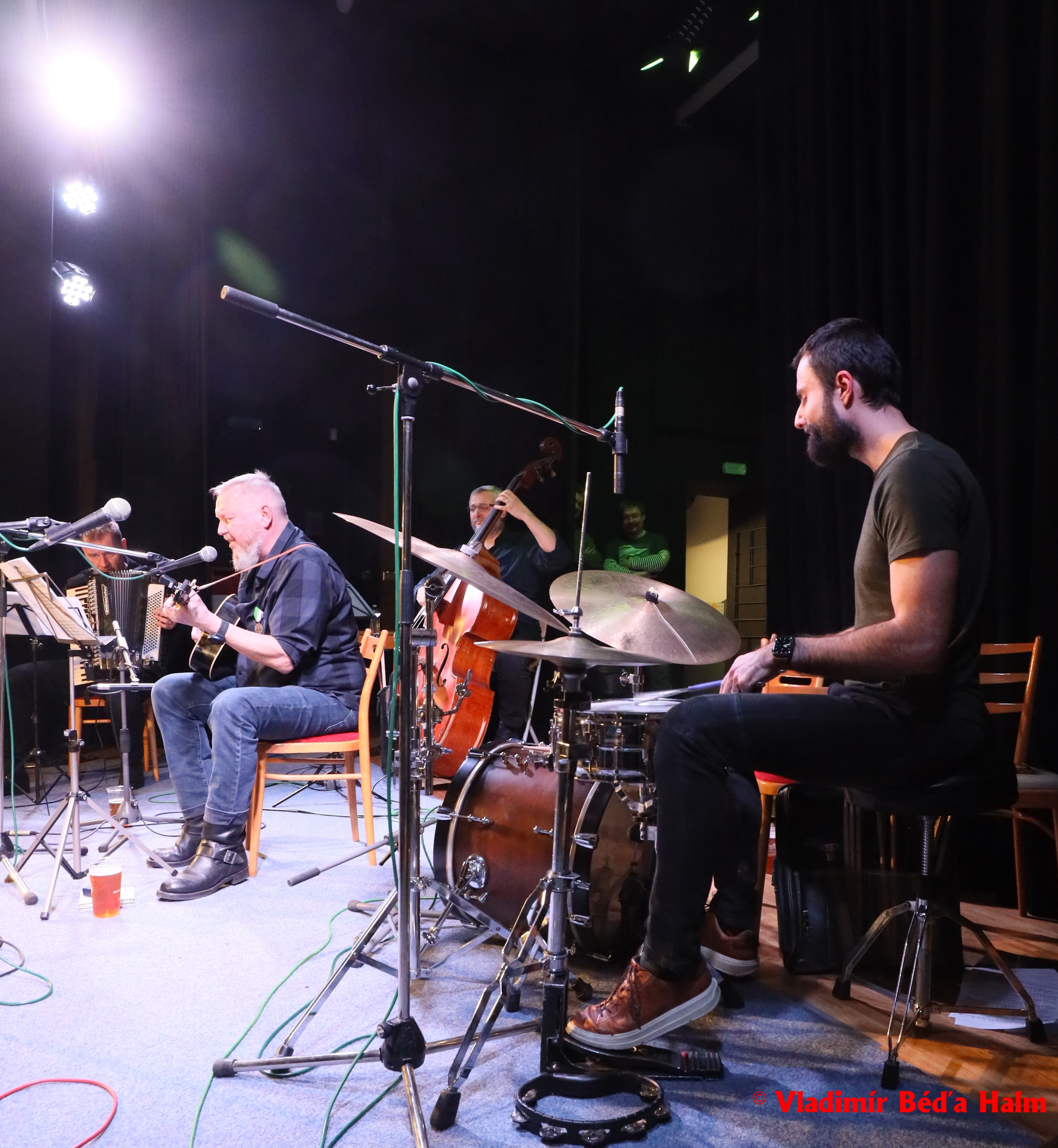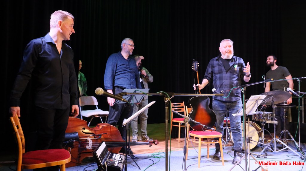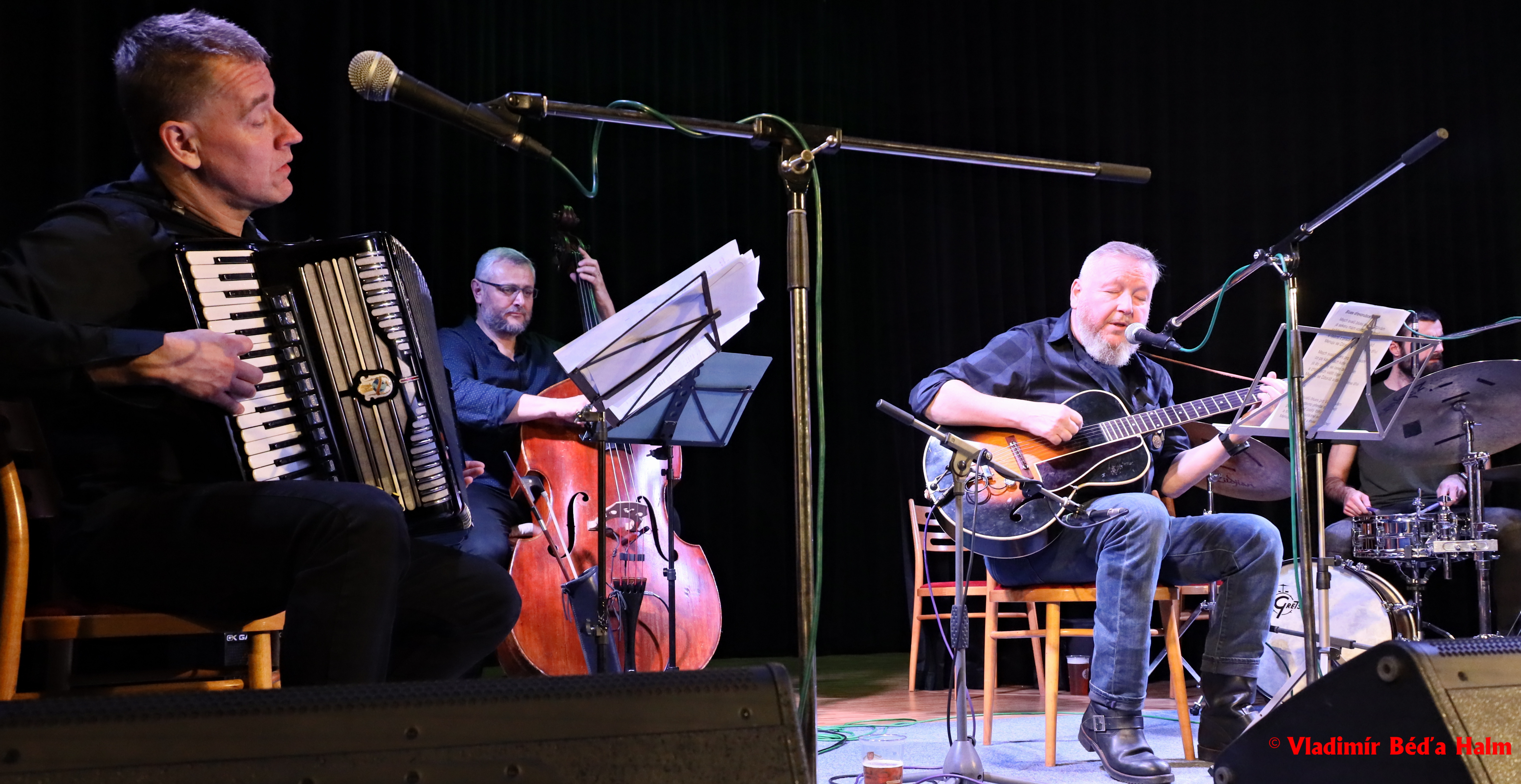 Křest taky nebyl úplně easy, protože jsem za tu dobu, kdy jsem se musel věnovat administraci všechno téměř zapomněl. Jsem sice zvyklý hrát i zpívat na koncertech, ale úplně jiný žánr, kdy zpívám anglicky a doprovázím víceméně volně. V trampské muzice jde o kontinuální doprovod a ještě k tomu zpěv v češtině. České texty jsou většinou daleko víc obsažné a taky komplikovanější. To by bylo ovšem na delší rozbor. Taky jsem prodal všechny svoje gibsonky abych projekt podpořil. Já vím někomu na tom jestli hraje na flattopa, nebo na archtopa nezáleží, ale ať to vezmete jak to vezmete, mě to zkrátka víc sluší s gibsonkou. Takže jsem koupil v Belgii starého Cromwella.